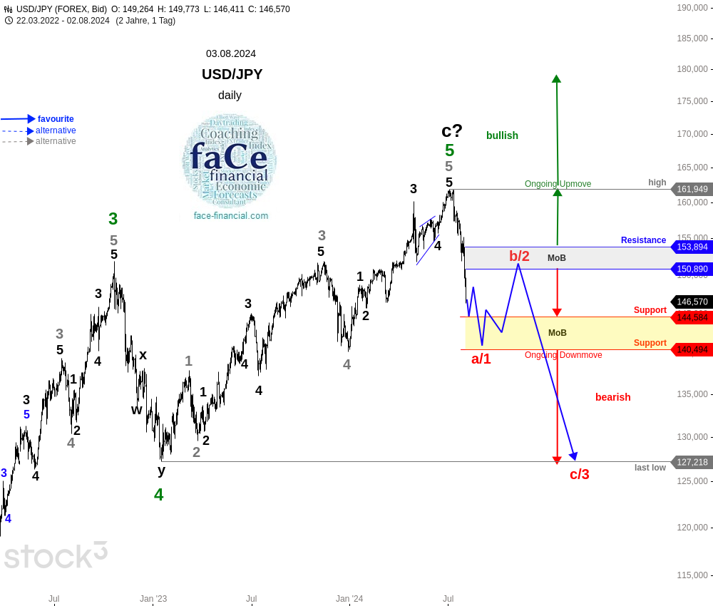 Widerstand : 148,60/149,27 + 150,91/152,89 + 158,88/161,94